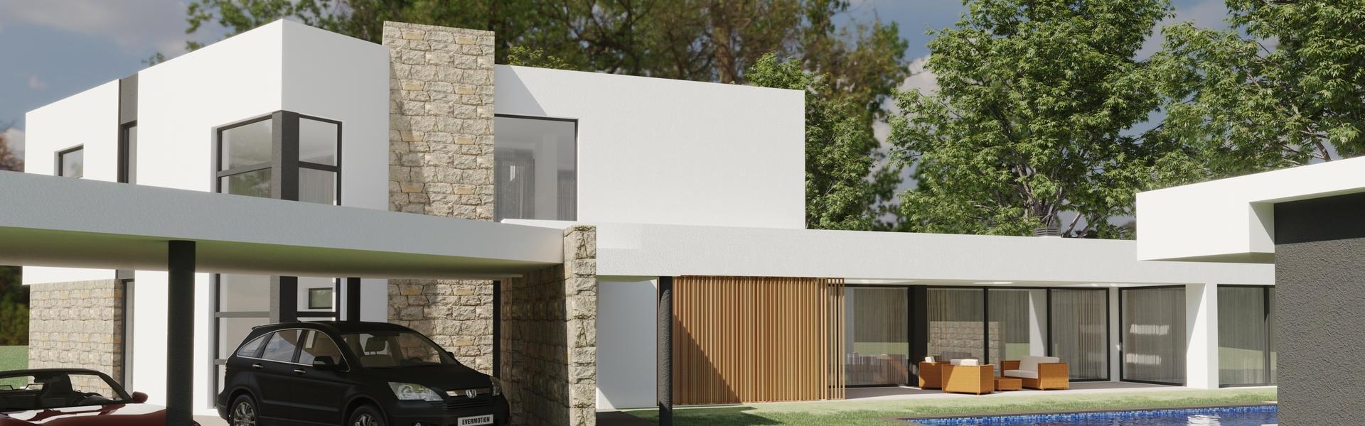 Neste caso a casa a desenvolver sobretudo em piso único, teve que ser usado parte do programa em piso superior, fruto da regra do PDM atual que impede que a profundidade máxima de um edifício mesmo moradia não ultrapasse os 18 metros , incluindo o piso térreo.