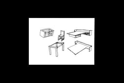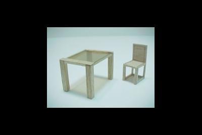 Mesa e cadeira, (maqueta) estudadas como modelo de equipamento de diversos multifamiliares. No imobiliário, existe também outro negócio paralelo, além do procura de terrenos, da compra de apartamentos, do alugar temos também o mobiliário que equipará esses imóveis. Desde as cadeiras, mesas, camas mesas de cabeceira, ternos de sofás (maples) estantes etc, um amplo mercado a ter que ser desenhado e construído nos mais diversos materiais.