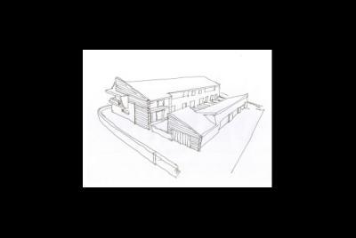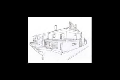 Esquisso do Multifamiar de casas e garagens em banda, situado em Aradas.