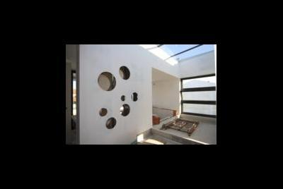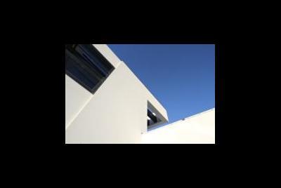 A cor exterior é o branco, não existe melhor, se um projecto é bom o branco valoriza a solução, se for mau realça os defeitos. A cobertura é invertida, optou-se por telas de pvc, triplas da SIKA TROCOL, termicamente a solução é resolvida por lajetas de “grisol” onde temos cinco centímetros de betão e cinco centímetros de isolamento térmico extrudido de Weber. Toda a cobertura foi testada à carga como é das regras.