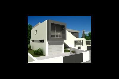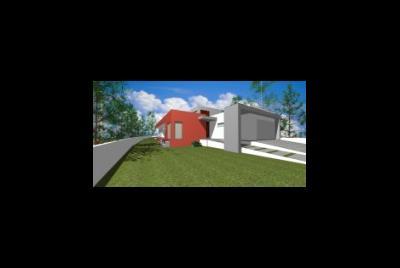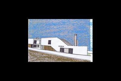 Esta é uma das casas do Lameirão um conjunto de habitações de piso único, esta tipologia habitacional muito do agrado geral pelo menos teoricamente, foi a opção neste conjunto habitacional. Como sempre, ou melhor como na maioria dos casos defendi colocar a garagem e a parte da habitação destinada a serviços na frente da habitação. Por um lado porque a relação com a rua é sempre feito nas situações de periferia urbana e até mesmo nas situações urbanas é feito pelo automóvel. Deixa-se assim o carro na frente da habitação, e ficamos com todo um terreno livre para fruir a habitação e os logradouros adjacentes.