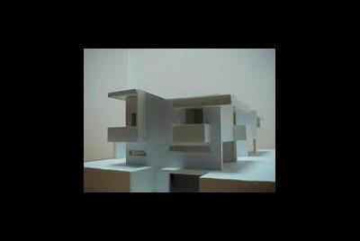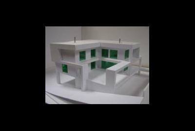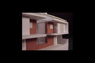Este projecto é muito particular devido ás envolvências, o terreno está 3 metros abaixo da cota da estrada, na frente como se verifica um tráfego de pessoas considerável uma vez que estamos na praça onde se situa a igreja e o centro social. Sendo assim colocou-se cave para poder situar a cota de soleira ao nível da estrada, nessa cave está o estacionamento, arrumos, lavandaria, despensa e divisões técnicas. Os dois pisos organizam-se em L, abrindo-se sobre o sol, foi no entanto necessário criar barreiras visuais para garantir a privacidade e fruição do terreno.