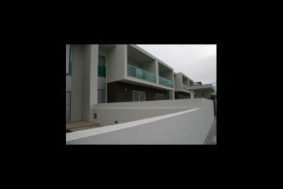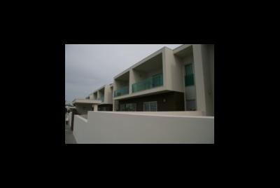 Os pavimentos exteriores são em granito serrado de monção, e tem decks de madeira, no logradouro posterior (Quintal, ou Aido, termo de origem árabe muito em uso na Região). As garagens com entrada franca e de dimensões consideráveis, com entradas e saídas francas, apenas partilham entre si os acessos, cada casa tem estacionamento fechado com áreas para dois carros e arrumos de dimensões consideráveis, em algumas delas com capacidade para 4 carros.