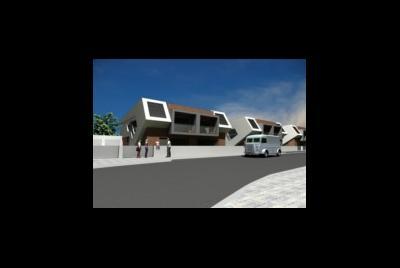 Esta proposta para um loteamento de que não foi da autoria deste escritório de arquitectura, tem 12 lotes de moradias unifamiliares geminadas, a solução com uma estratégia de conjunto como forma de valorização global, infelizmente por dificuldades de entrar em acordo não foi possível chegar a acordo entre os promotores iniciais do loteamento e futuros ou melhores potências compradores do loteamento.