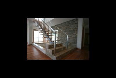 O conjunto de moradias de acordo com o Arquitecto e Promotores, tem a escada na parte central da habitação, neste caso os compradores e actuais donos de obra, pretenderam que o jardim e escada fosse mais protegida em termos de volume dai usou-se vidro e acessórios da Saint Goban, proprietária da antiga Covina.