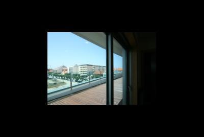 FRACÇÃO “AB” - No Terceiro Andar Esquerdo Recuado, de tipologia T2, com entrada na Rua dos Emigrantes com o número, 28 (Bloco B), destinada a habitação, composta por hall de entrada, cozinha, sala comum, hall de distribuição interior, duas instalações sanitárias, sendo uma privativa e dois quartos. Esta fracção tem uma área bruta privativa cento e quarenta e um metros quadrados e noventa e cinco decímetros quadrados (141,95m2). Arquitectura - José Vitória Arquitectos
