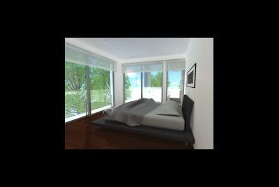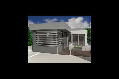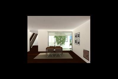 O terreno de forma muito dificil, tem casa gandareza implantada mas muito degradada, apresenta um ângulo agudo muito prenunciado, acrescido da volumetria das habitações envolventes. O logradouro tardoz está a sul poente o que facilitou que os espaços sociais se localizassem nesse local. A fazer a frente da construção e os alinhamentos está uma pergula que indica o percurso de entrada assim que se depara com o hall de entrada vê-se no ponto oposto um vazio onde temos um jardim.