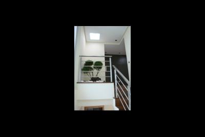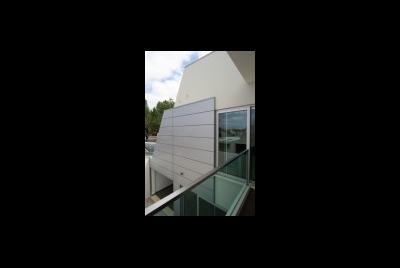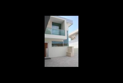 Foto de um dos patios da moradia do lote 4 da Quinta da Luz, freguesia de S. Salvador, Municipio de Ilhavo, Distrito de Aveiro, Portugal. Foto de um dos patios da moradia lote 4 da Quinta da Luz, Freguesia de S. Salvador, Municipio de Ilhavo, Distrito de Aveiro, Portugal. O logradouro de cada um dos lotes tem um caracter muito diferênciado e multifacetado, apresentando 6 caracteristicas basicas; 1- Jardim de ligação interior exterior , um pequeno jardim liga o muro de vedação com a garagem e constitui um "filtro" de ligação com a rua, 2 - o acesso à garagem, a entrado dos carros é feita neste local, a abertura é perpendicular ao arruamento, para uma maior privacidade , 3 - o primeiro dos nucleos mais intimo e privado da habitação, permite o seu uso e fruição sem problemas de privacidade comk uma ligação imediata com a cozinha e sala, quer interna quer externamente, 4 - ligação da externa da sala com o logradouro posterior, é aquele que melhor usufrui da exposição solar, 5 - logradouro posterior com acesso directo da sla e do quarto/escritório, 6 - jardim relvado com área ampla e ligação independente.