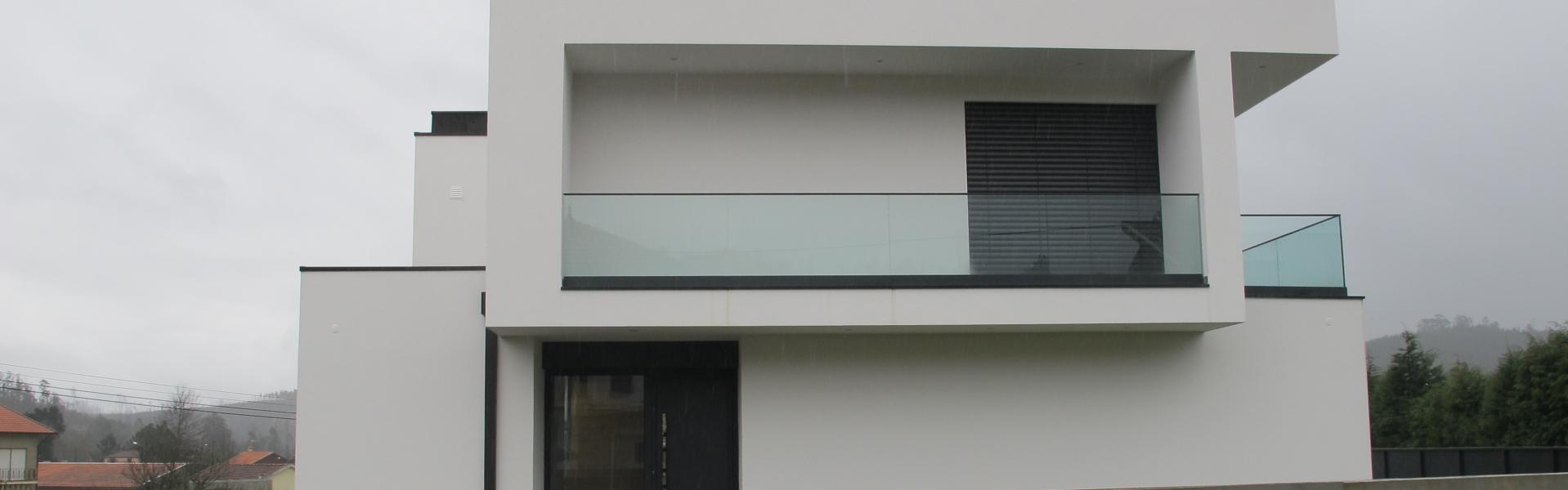 A casa é isolada com cave completamente desobstruída no tardoz do terreno que fica a sul . No piso térreo situou-se a sul a cozinha que aproveita o sol nascente seguindo-se a sala. Ambas as divisões têm ampla varanda e terraço para fruir não só da exposição solar como das frondosas vistas para a envolvente com árvores, pinheiros, silvícolas e outras. No piso superior colocou-se como é habitual os quartos. A cobertura plana é em zinco.