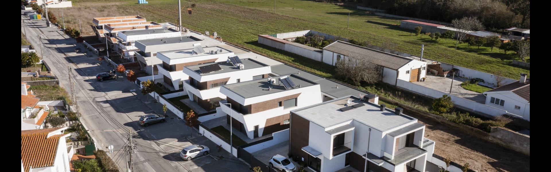 Além do loteamento foi realizada em simultâneo a arquitetura das 17 casas, 11 isoladas e as restantes geminadas.