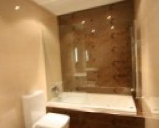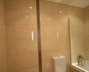 Casa de banho com cores beije em cerâmicos rectificados da Margrês, os móveis foram desenhados de propósito para a casa de banho.