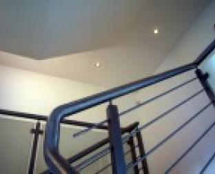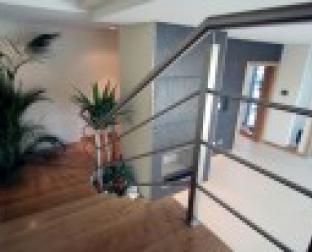 O hall de entrada é tratado do forma muito cénica assim como a escada e percurso de subida para o piso superior , as vistas são criteriosamente sel