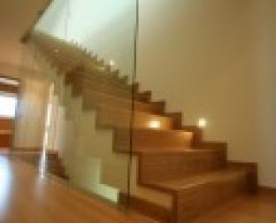 A escada de ligação dos quartos ao sótão é de tiro e toda ela revestida