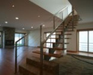 Neste caso optou-se por pontuar o interior com pedra xistosa de tons castanho variando o tom de claro a escuro.