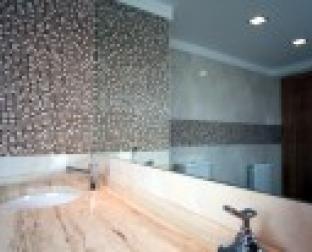 É a sala de banho de um quarto com vestiário, roupeiros, e hall de entrada