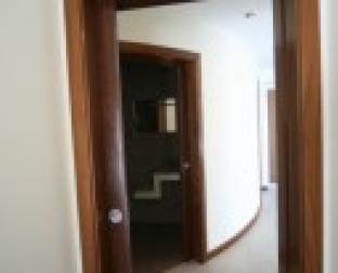 É visivel a curva da parede que delimita a sala e a casa de banho do piso